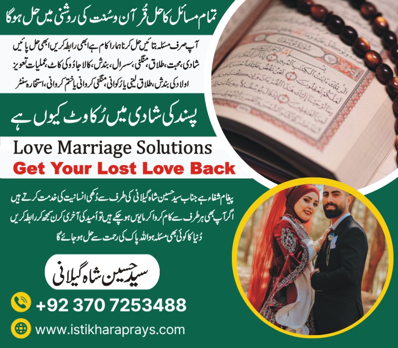 Love marriage, agar ap apni shadi ki waja se pareshan hain, mohabbat karte hain kisi ke sath magar us ke parents ya wo khud shadi ke liye agree nahi hai or ap us ke sath mohabbat karte hain to abi rabta karen ap ki love marriage ka hal ho jay ga. Pasand ki shadi…