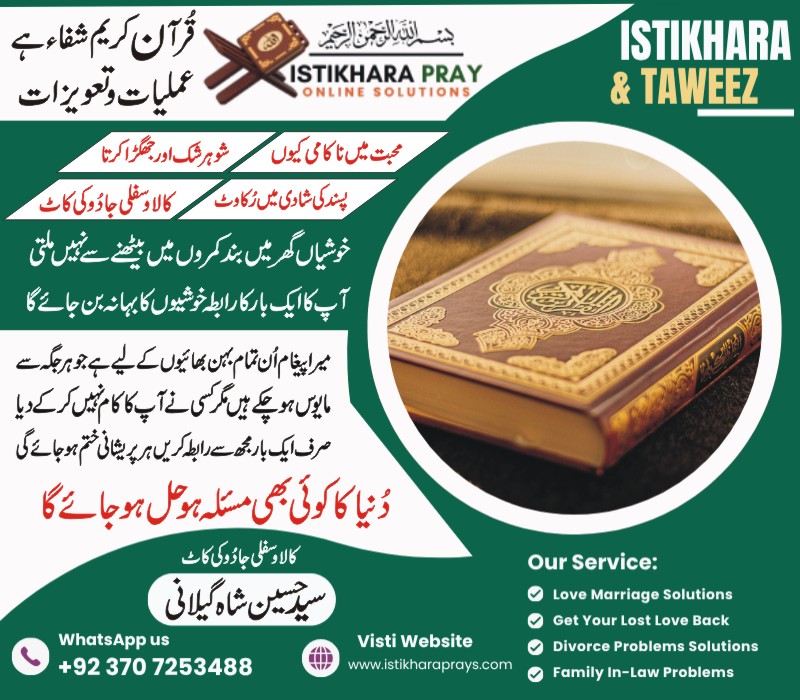 Contact us, Syed Hussain Shah Gilani Online 24 hour services of Istikhara and taweez amliyat solutions for all type problems contact us by call or WhatsApp 100% solutions for the all type problems.